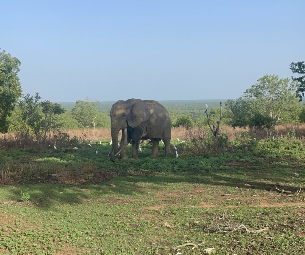 Die Osterferien hier am Bezaleel Educational Complex haben begonnen und für meinen Freund Philipp, meine Mit-Volontärin Lucia und mich geht es damit auf in ein neues Abenteuer: Unseren Roadtrip rund durch Ghana! Frühmorgens um 5 sitzen wir schon an der Haltestelle in Sunyani und warten auf unseren Bus in Richtung Tamale. Unser heutiges Ziel: der Mole Nationalpark im Norden Ghanas! Sechs Stunden chaotische nigerianische Drama-Serien im Busfernsehen und etliche Schlaglöcher später werden wir endlich an der Kreuzung „Damongo Junction“ abgesetzt, von der aus wir mit dem Taxi weiterfahren müssen. Bald schon stehen wir vor der Eingangspforte mit der Aufschrift „Mole Nationalpark“, ein Highlight, auf das ich mich schon seit meiner Vorbereitung auf das Auslandspraktikum gefreut habe. Ein Highlight ist der Nationalpark, der mitten in Ghanas Baumsavanne liegt, allemal! Auf einer Jeep-Safari können wir Elefanten, Antilopen, Warzenschweine und viele andere Tiere aus nächster Nähe beobachten und auch vor unserer Unterkunft zeigen sich die grauen Riesen nicht weit entfernt am Wasserloch. Es ist einfach etwas anderes, diese faszinierenden Tiere in freier Wildbahn zu sehen, als im Zoo hinter Gittern! In einem nahegelegenen Dorf namens Larabanga besuchen wir eine der ältesten Moscheen Ghanas und treffen eine Frau, die traditionell Sheabutter herstellt. Zum Mole Motel mit Pool und Restaurant in dem es vor „Obrunis“ (= weiße Menschen) nur so wimmelt, stellt das Dorf Larabanga mit seinen engen Gassen und Lehmhütten einen starken Kontrast dar und lässt mir wieder einmal bewusstwerden, in was für einer Blase wir manchmal leben…
