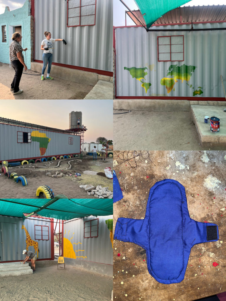 Neben den eben genannten Projekten haben wir eine Kolping-Gruppe aus Deutschland, mit der wir 2 Wochen lang gemeinsam im Haus gelebt haben, bei ihren Aktionen unterstützt. In Zusammenarbeit wurde der Außenbereich des Hope Spots renoviert und ein Projekt mit selbstgenähten und wiederverwendbaren Binden für die Schülerinnen in der Schule / im Hostel ins Leben gerufen.