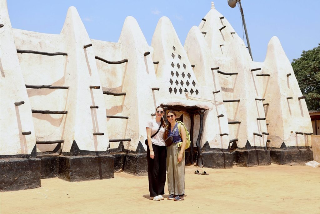 Den darauffolgenden Tag zeigte uns unser Host noch ein sogenanntes Eco Village, ein traditionelles Dorf in der Umgebung. Dort konnten wir einen Einblick in verschiedene lokale Traditionen und Handwerke bekommen. Besonders interessant war die Herstellung von Sheabutter, die in Ghana eine wichtige Rolle spielt und aus den Nüssen des Sheabaums gewonnen wird. Außerdem besuchten wir ein Taubenhaus und einen Herbalist, also eine Art traditionellen Heiler, der mit Kräutern und Pflanzen arbeitet. Spannend fanden wir auch die Bedeutung der Tauben in der lokalen Kultur: Sie werden oft an Menschen verschenkt, die einem besonders wichtig sind. Anschließend fuhren wir noch zur Moschee von Larabanga. Sie gilt als die älteste Moschee in Ghana und wurde bereits im Jahr 1421 erbaut. Das Gebäude ist im sudanesischen Lehmbaustil errichtet und gehört zu den bekanntesten historischen Orten im Norden des Landes.
